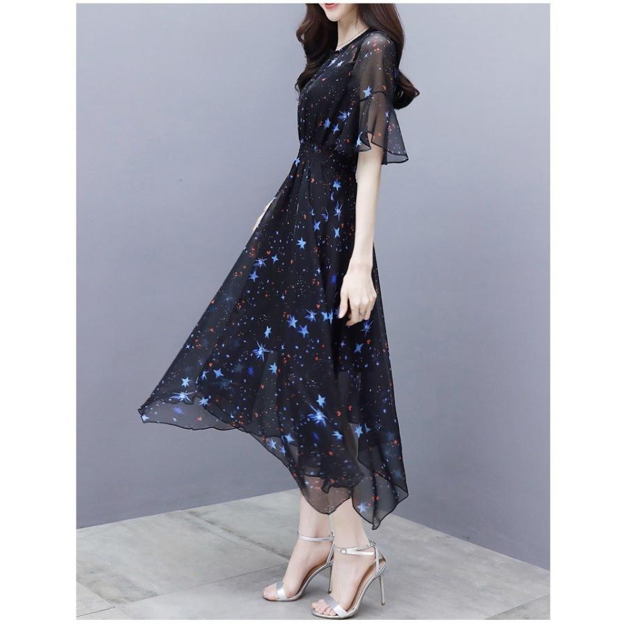 Minana 森ガールワンピース 蝶柄シフォンワンピース 蝶柄 ワンピース 半袖 フレアスリーブ シフォンワンピース 花柄ワンピ 春ワンピ 夏ワンピ ハイウ